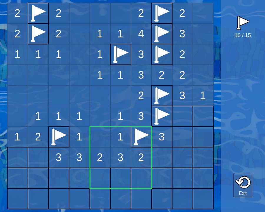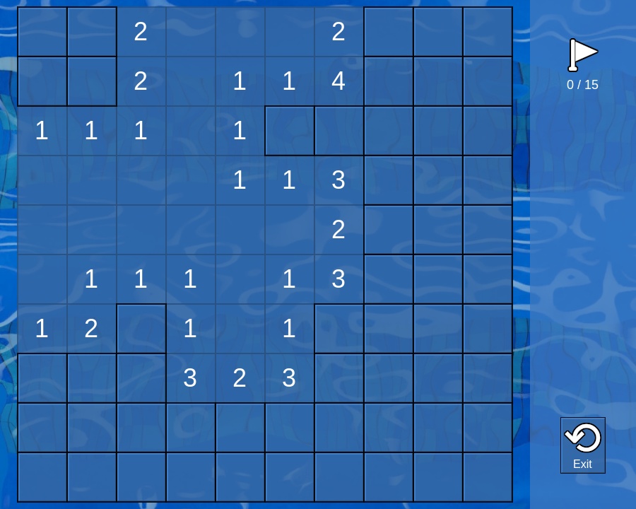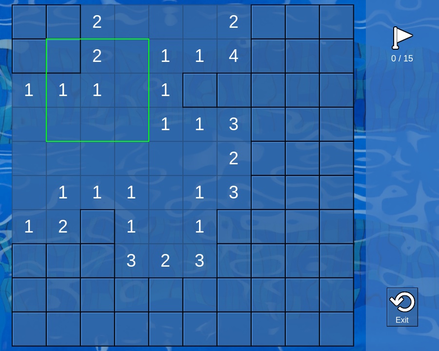 Игровое поле состоит из квадратных ячеек. Сначала все они закрыты и выглядят как кнопки. Под каждой может скрываться число, мина или пустота. Нажмите на кнопке и узнаете, что там. Будьте осторожны, ведь открыв мину, вы проигрываете! Однако, игра устроена так, что под первой открываемой кнопкой мины никогда нет. Поэтому нажимайте, где хотите на игровом поле, чтобы начать игру. Обычно открывается некоторое количество ближайших квадратов и дальше уже можно применять логику, чтобы понять, где находятся мины. А именно, каждый открытый номер в точности равен количеству мин вокруг него. Соответственно, вокруг пустоты мин нет. Пустота это ноль, просто нули не пишутся.