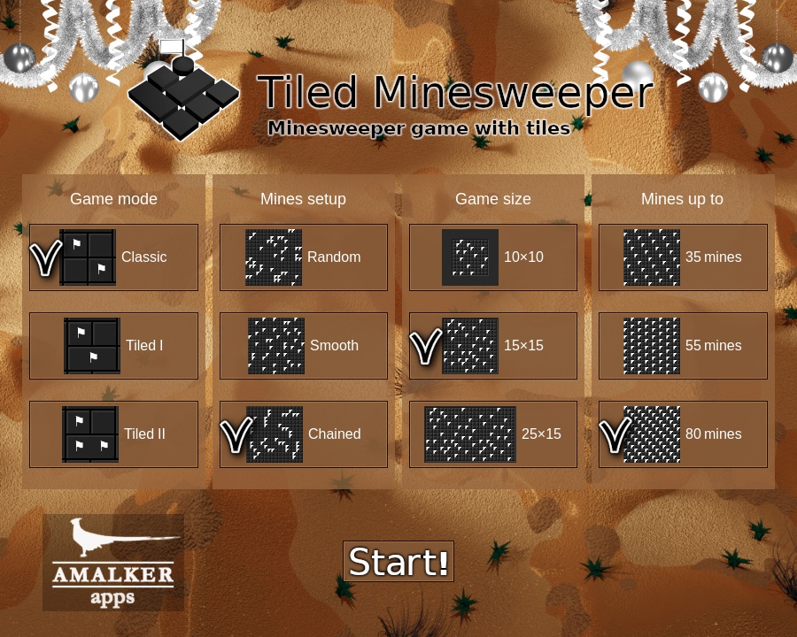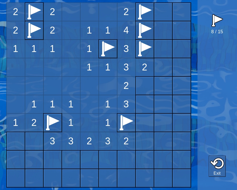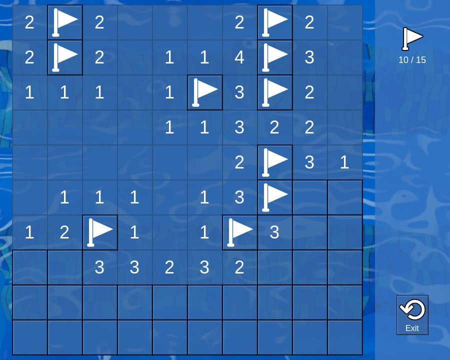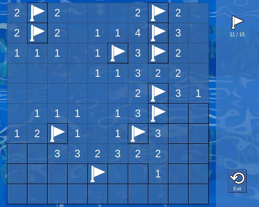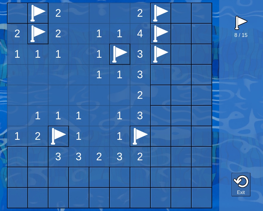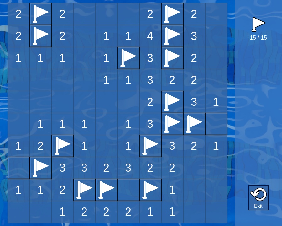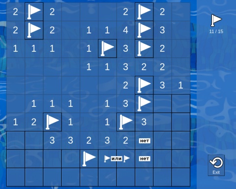 Нужно пометить флажками те кнопки, за которыми спрятаны мины, и открыть все остальные. Число подсказывает, сколько всего мин вокруг клетки. Подробнее...