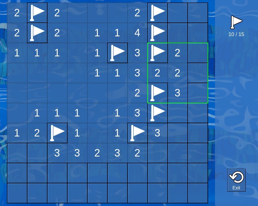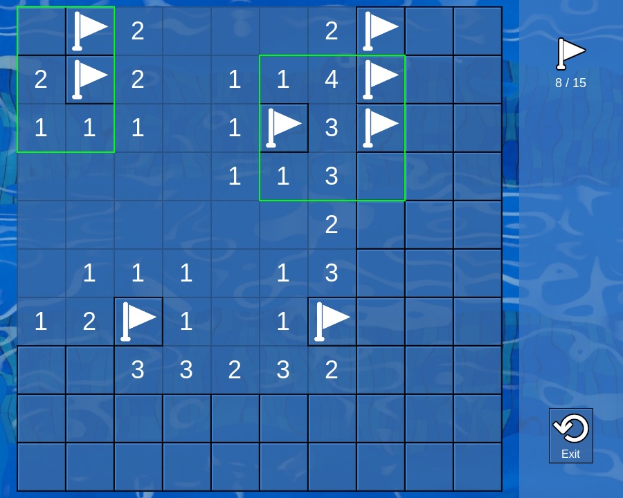 Цифры в открытых клетках показывают, сколько мин вокруг. Часто одна цифра позволяет понять, какие клетки "заминированы". Порой это можно сделать с помощью двух цифр. Периодически встречаются и сложные нестандартные ситуации. Иногда в конце игры можно использовать количество оставшихся.