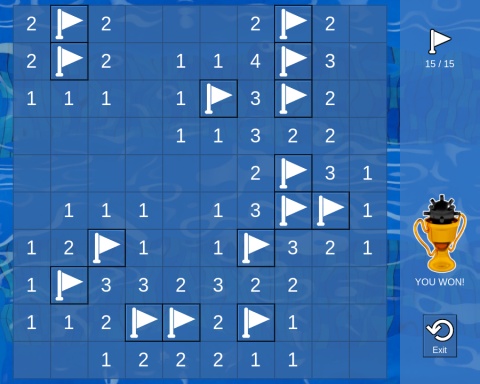 Для этого нужно пометить флажками кнопки, скрывающие мины, и открыть все остальные. В одних вариантах игры вы проигрываете, случайно открыв всего одну мину, в других можно продолжать партию.